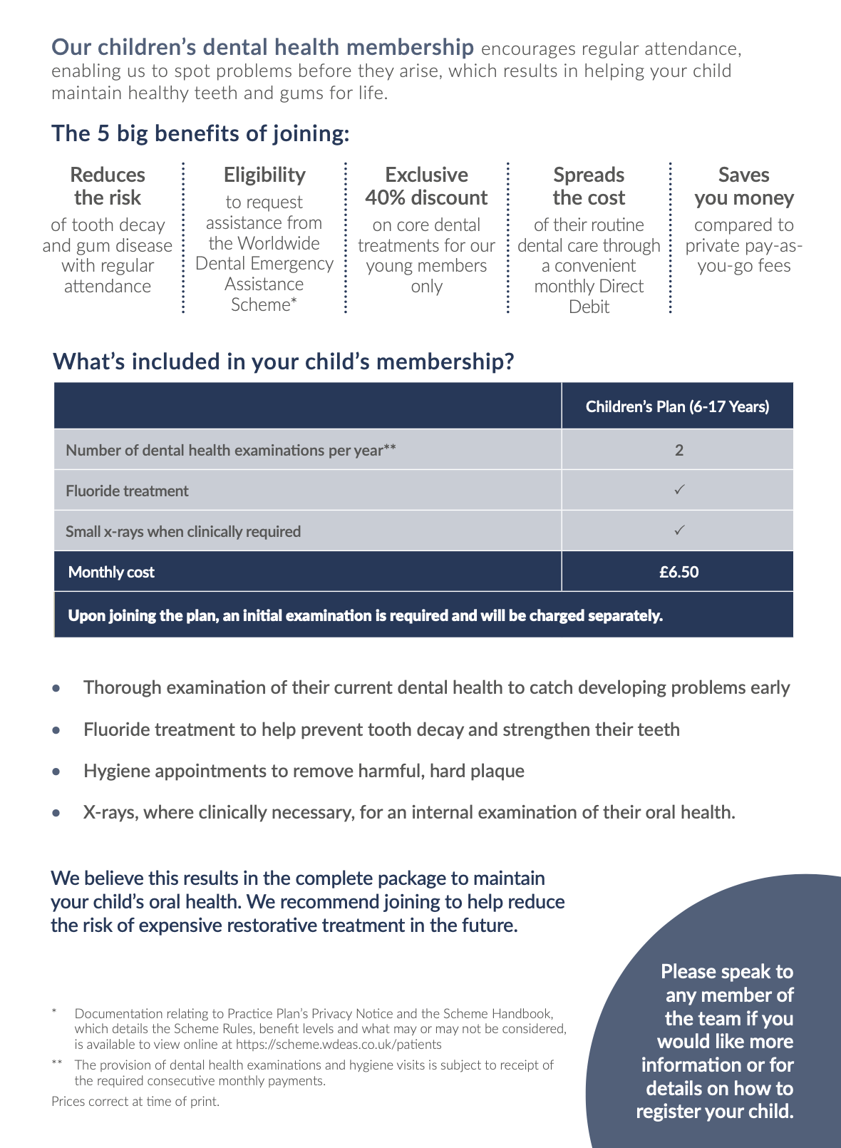 Help your child maintain healthy teeth and gums for life with regular dental care — all for just £6.50 per month.